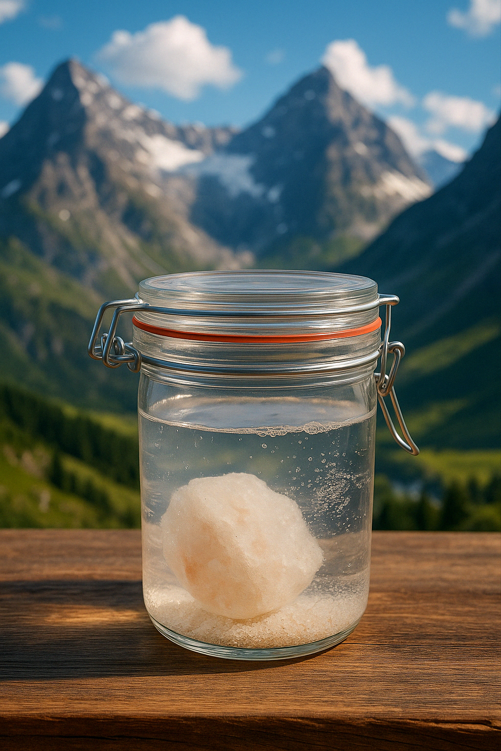 Fertige Salzsole aus frischem Quellwasser der Ebenthaler Heilquelle und Himmalaya Natursalzkristalle